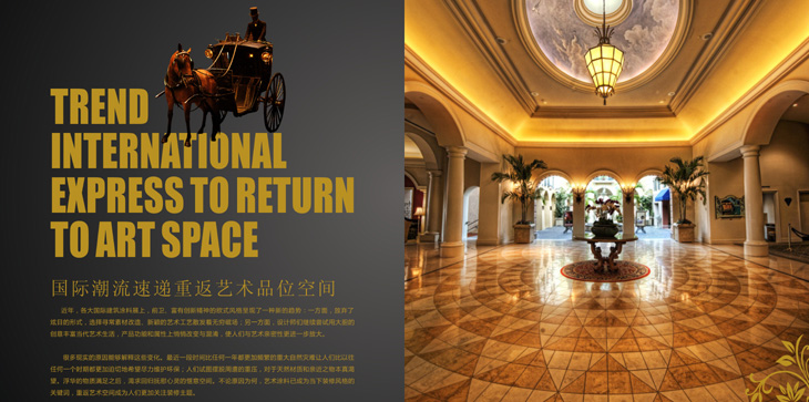 艺术涂料优势明显装修市场需求量大,前景广阔;中国人口大,将近4亿户家庭每年需要装修的用户就达3000万,还有其他公共装修市场,年轻人需求明显。现代人装修追寻新颖时尚,个性突出,而艺术涂料刚好满足了这个年轻市场的需要。